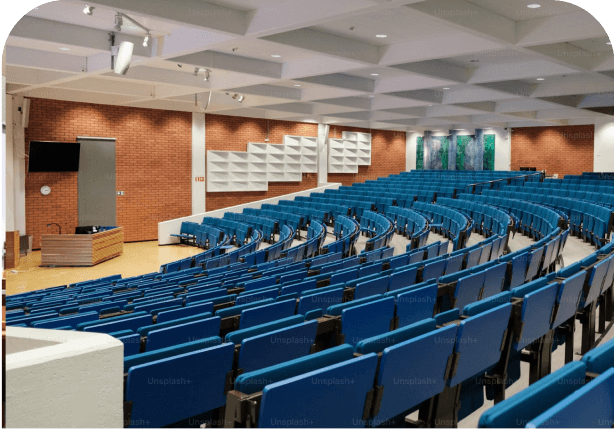 Designed for large scale presentations, guest speaker events, and hybrid conferences. Auditoriums require comprehensive AV infrastructure to ensure exceptional sound coverage, professional video capture, and full-room visibility for live and remote audiences.